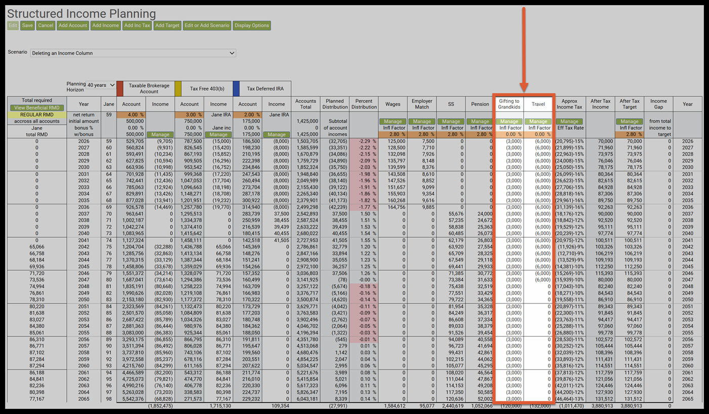 Step 5: Structured Income Planning Page: SIPS will automatically take you back to the Structured Income Planning page, and the selected column will be removed. If you feel you need more support or would like to set up demo time with one of our representatives, please contact us at: support@planscout.com.