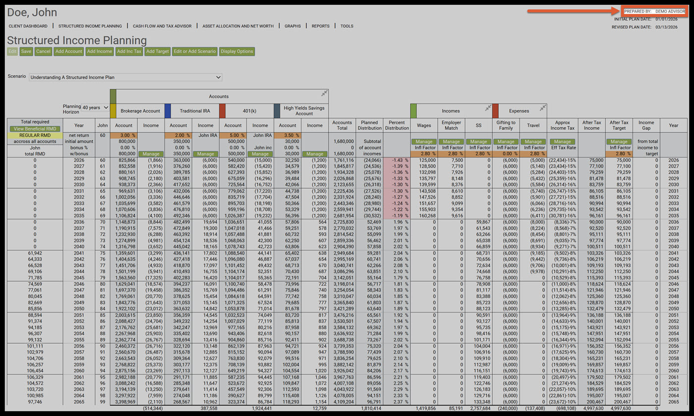 Step 1: Prepared By: This represents the person who created the structured income plan.