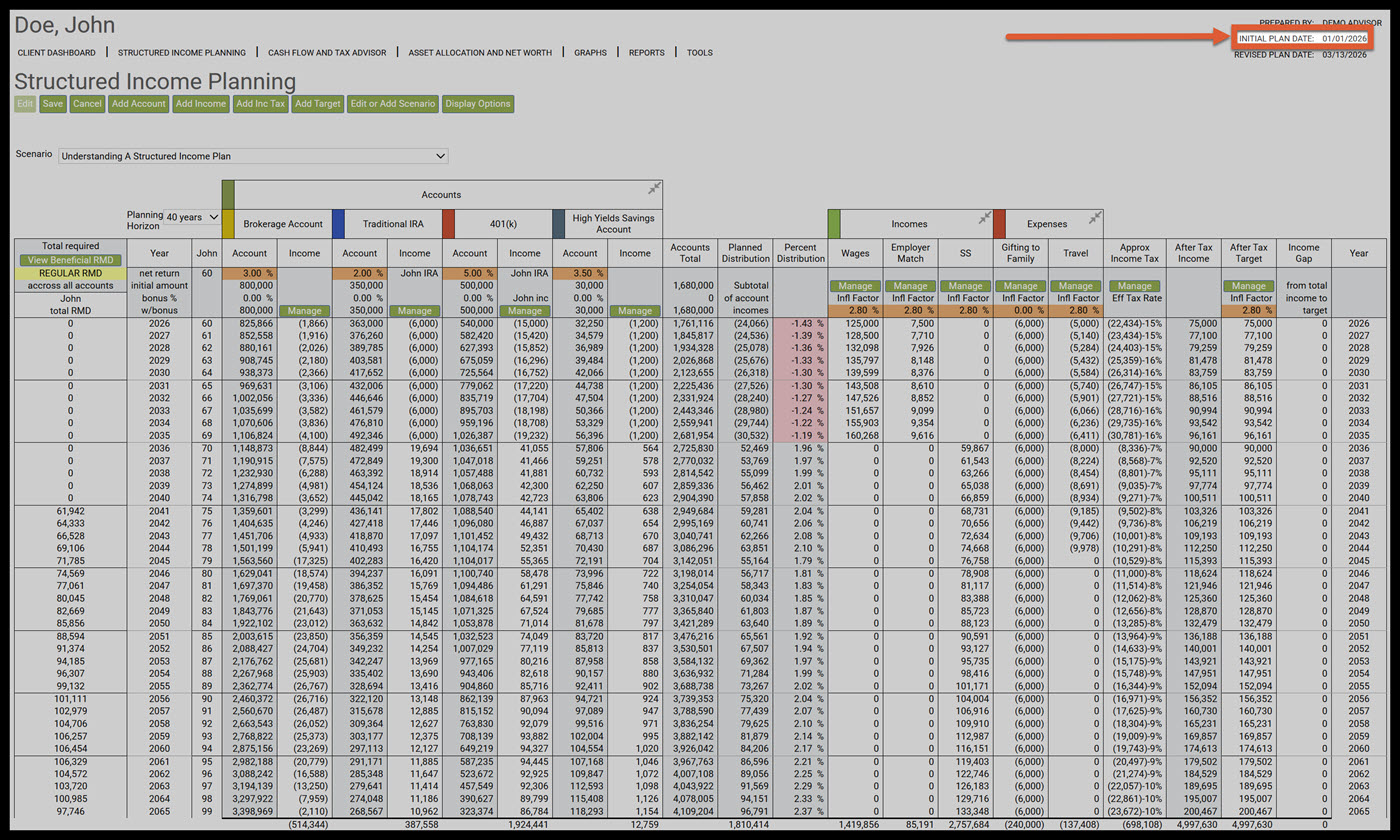 Step 2: Initial Plan Date: This date represents the first day of the structured income plan. To learn more about inital plan date see article: Editing the Initial Plan Date