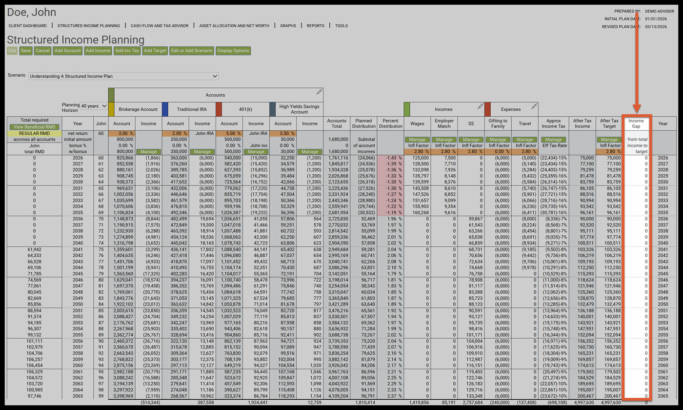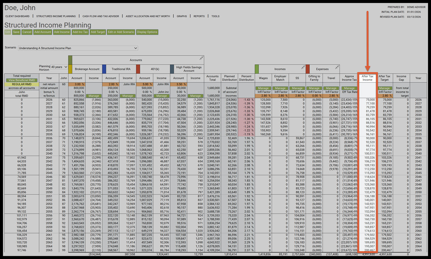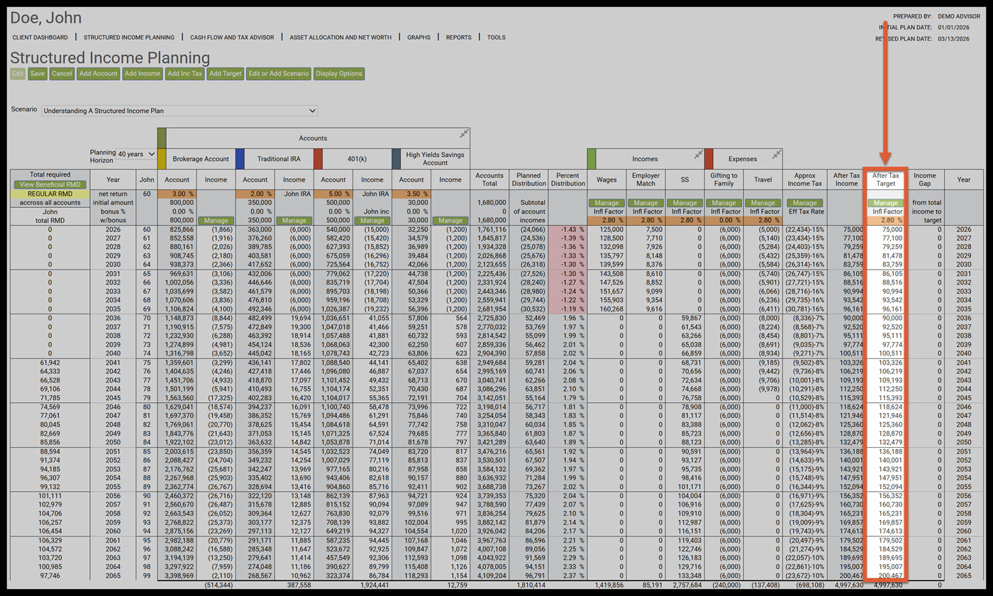 - Understanding a Structured Income Plan that has a Target Income and an After-Tax Target Columns
