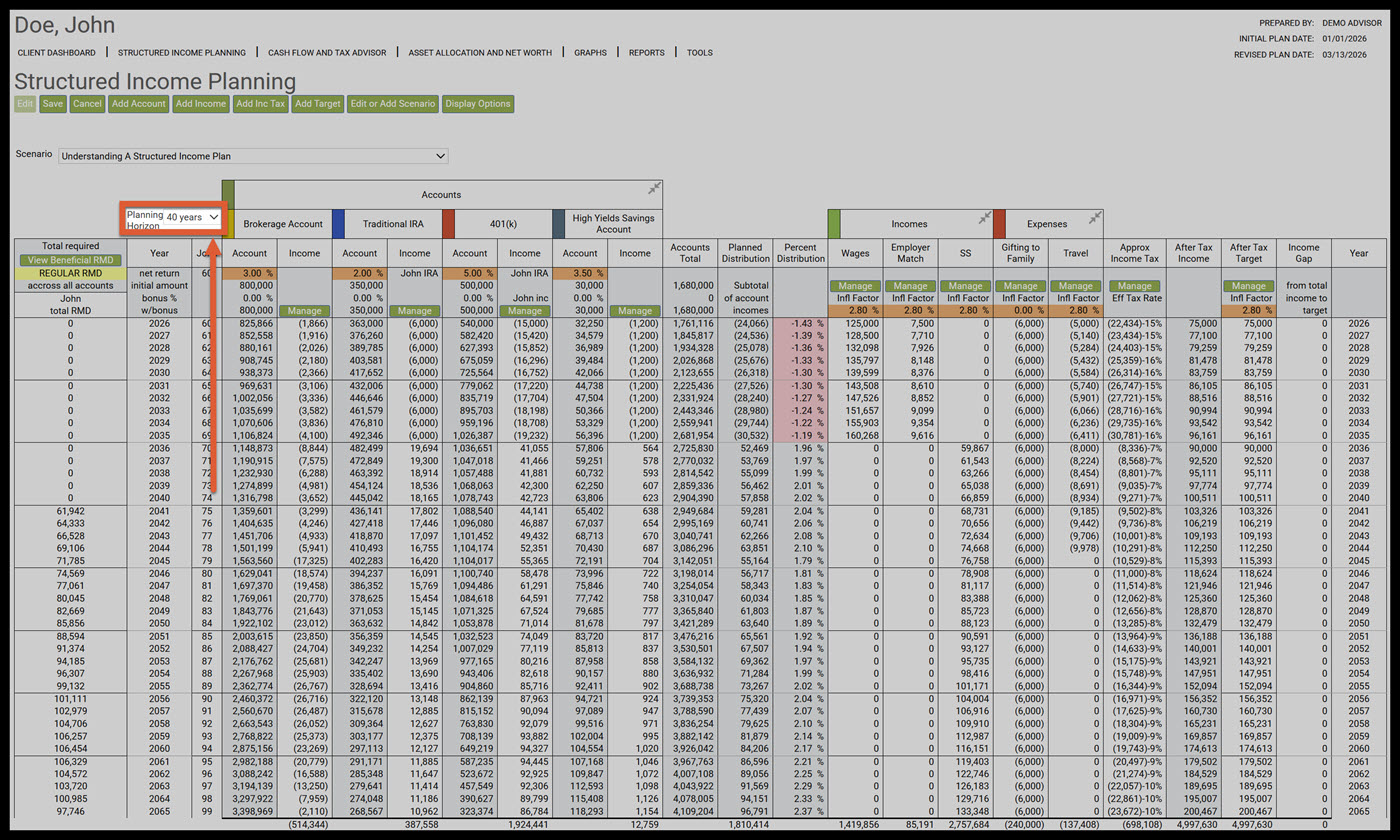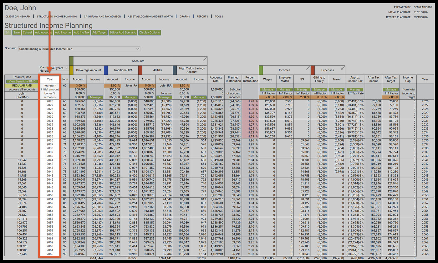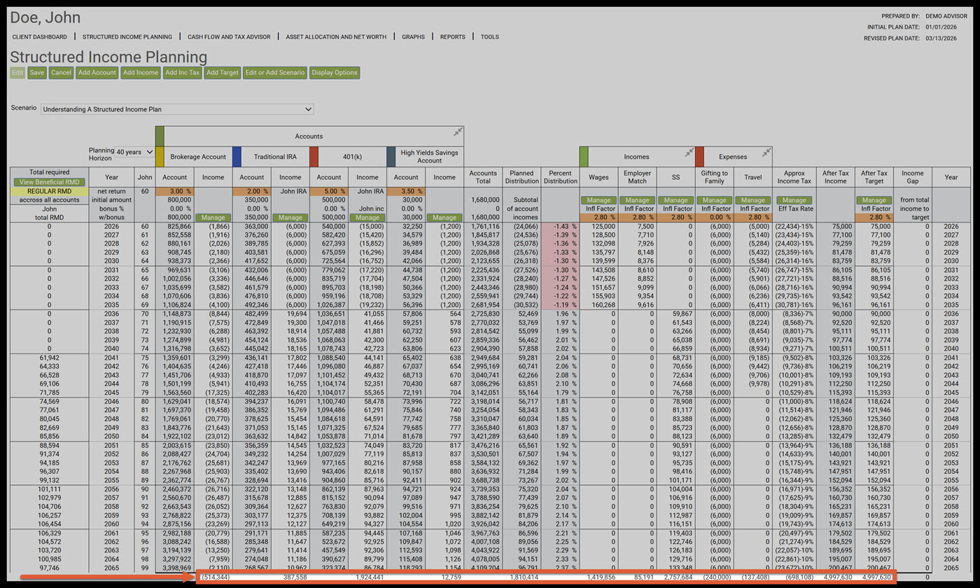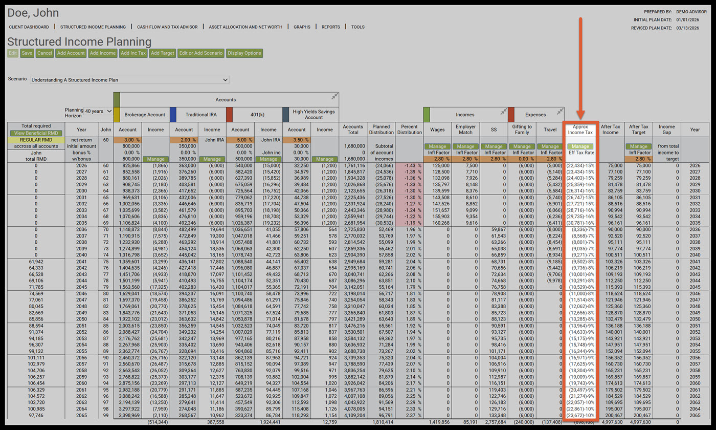 - Understanding a Structured Income Plan that has a Target Income and an After-Tax Target Columns